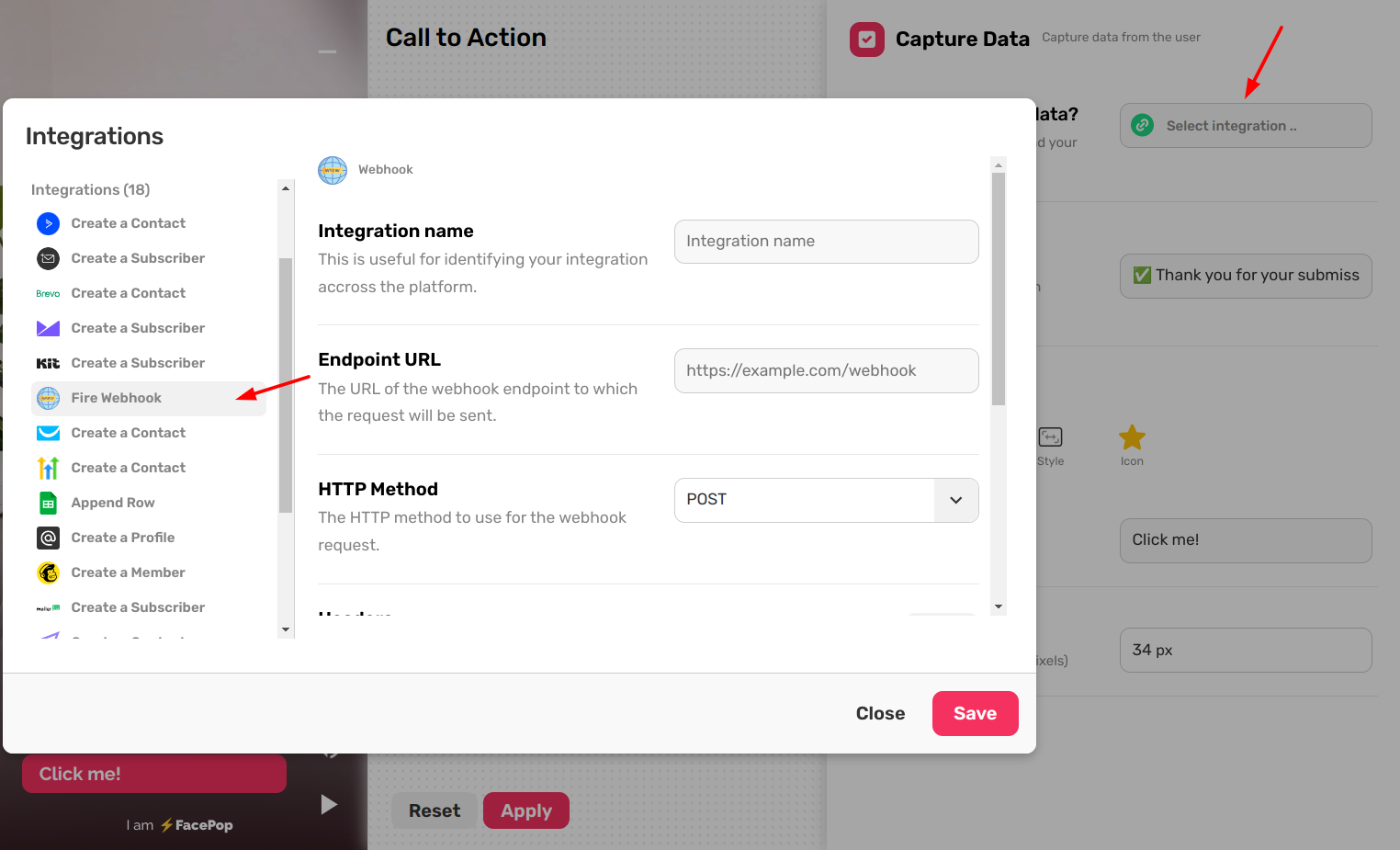 With FacePop, you can automatically trigger actions when a visitor submits their information through a Capture Data CTA.
